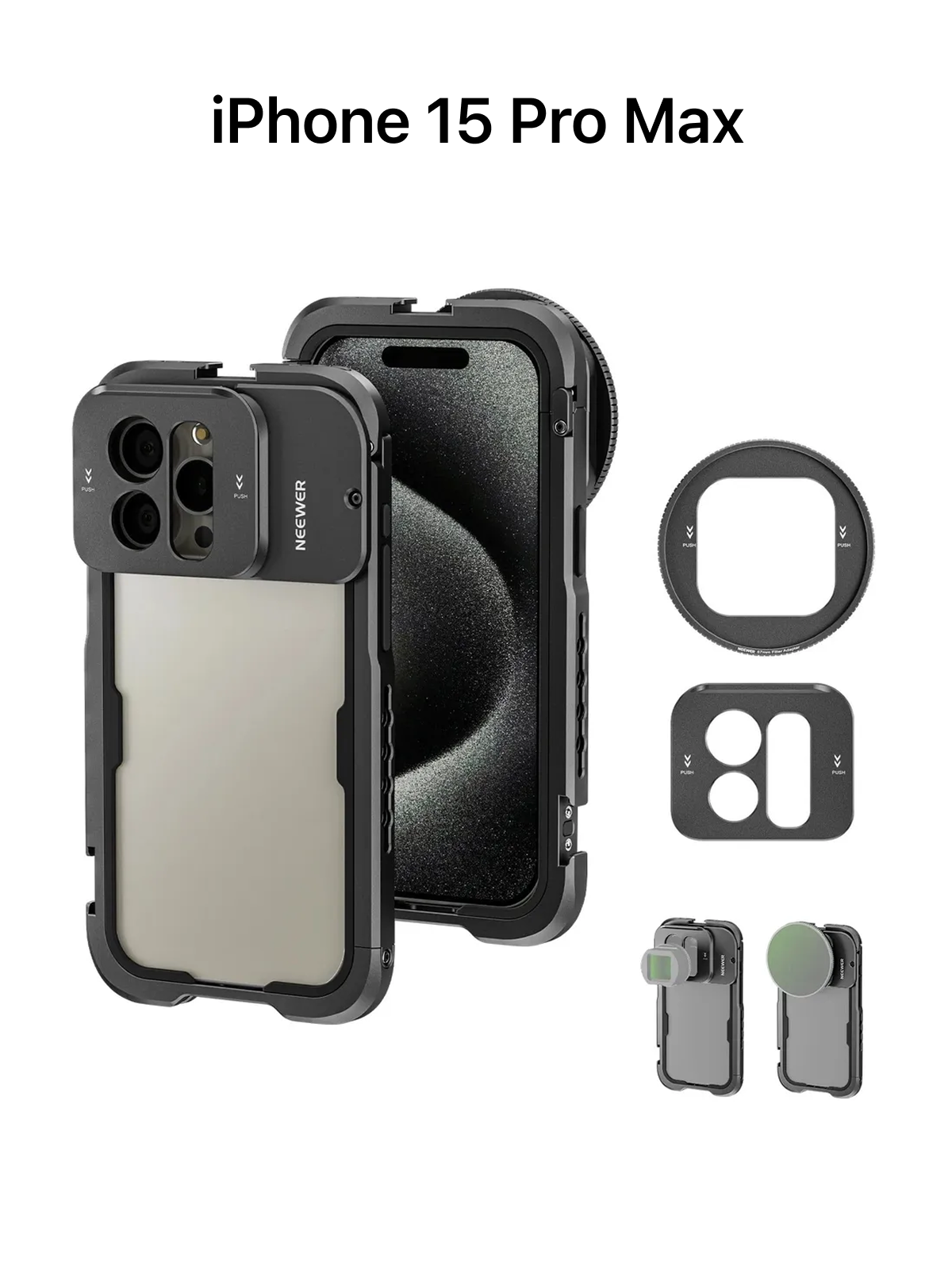 Профессиональный алюминиевый чехол NEEWER PA074 создан для тех, кто использует iPhone 15 Pro Max как полноценный инструмент фото- и видеосъёмки. Прочная цельнометаллическая конструкция обеспечивает надёжную защиту смартфона и одновременно расширяет его функциональность, превращая устройство в мобильную камеру продвинутого уровня.