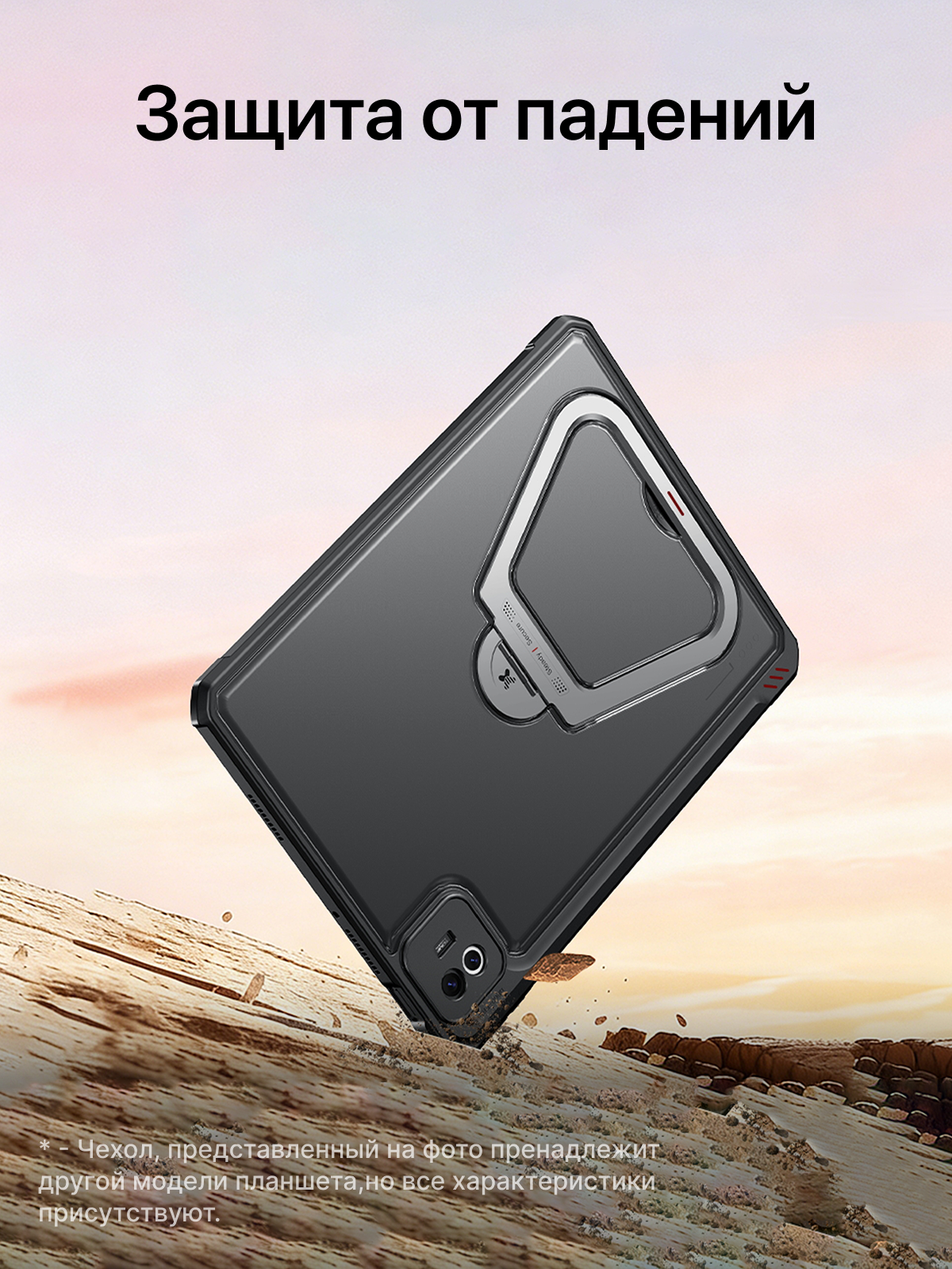 Усиленная противоударная конструкция защищает устройство от падений, ударов и царапин. Чехол плотно фиксируется на планшете, не деформируется и сохраняет аккуратный внешний вид при длительной эксплуатации.