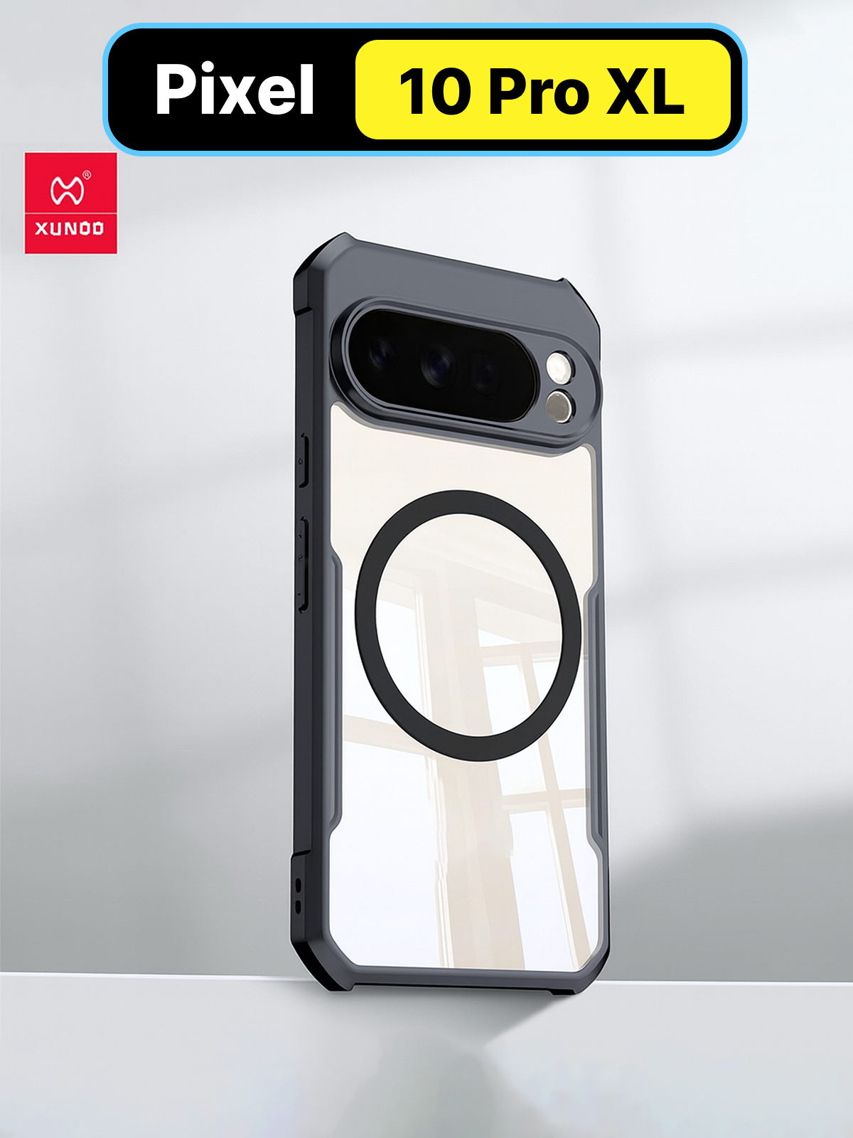Чехол для Google Pixel 10 Pro XL изготовлен из поликарбоната и термопластичного полиуретана. Задняя панель абсолютно прозрачная и не скрывает цвет смартфона. Чехол-бампер имеет усиленные углы с "воздушной подушкой", способные принять на себя удар. Простая и надежная конструкция чехла обеспечивает безопасное и комфортное использование смартфона. Противоударный чехол изготовлен специально под модель телефона Google Pixel 10 Pro XL, благодаря чему плотно надевается, соответствуя всем изгибам, разъёмам и кнопкам устройства. Главная его особенность заключается в усиленных углах: между углами чехла и телефона образуется воздушная подушка, амортизирующая при ударах и падениях. Бортики выступают над дисплеем и модулем камер, тем самым дополнительно их защищая, ещё больше снижая вероятность появления сколов и царапин. Сам чехол сделан из упругого, гибкого и износостойкого материала.