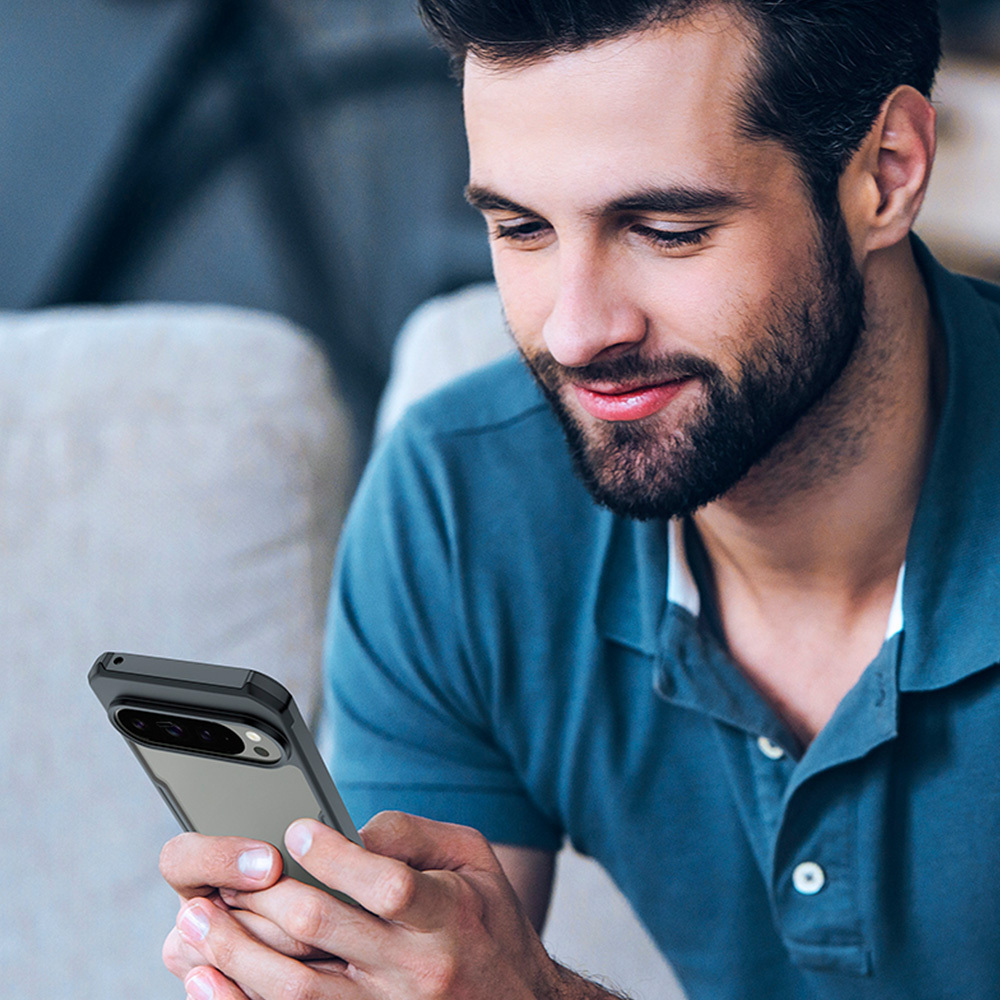 Чехол для Google Pixel 9 / 9 Pro изготовлен из поликарбоната и термопластичного полиуретана. Задняя панель абсолютно прозрачная и не скрывает цвет смартфона. Чехол-бампер имеет усиленные углы с "воздушной подушкой", способные принять на себя удар. Простая и надежная конструкция чехла обеспечивает безопасное и комфортное использование смартфона. Противоударный чехол изготовлен специально под модель телефона Google Pixel 9 / 9 Pro, благодаря чему плотно надевается, соответствуя всем изгибам, разъёмам и кнопкам устройства. Главная его особенность заключается в усиленных углах: между углами чехла и телефона образуется воздушная подушка, амортизирующая при ударах и падениях. Бортики выступают над дисплеем и модулем камер, тем самым дополнительно их защищая, ещё больше снижая вероятность появления сколов и царапин. Сам чехол сделан из упругого, гибкого и износостойкого материала.
