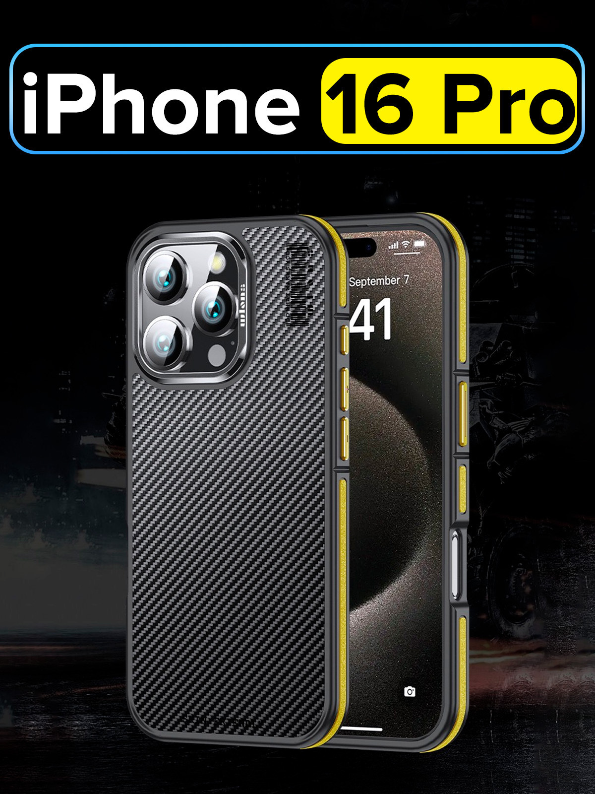 Чехол для Apple iPhone 16 Pro кевларовый, black&yellow — идеальное сочетание стиля и защиты для вашего смартфона. Этот противоударный чехол обеспечивает надежную защиту вашего Apple iPhone 16 Pro и подчеркнет его элегантный дизайн. Изготовленный из высококачественного арамидного волокна (кевлар) 600D, этот чехол обеспечивает исключительную прочность и долговечность, что делает его идеальным выбором для активных пользователей. Металлическая рамка вокруг блока камер не только придает стильный вид, но и обеспечивает дополнительную защиту от повреждений. Чехол поддерживает технологию Магсейф, что позволяет легко и быстро заряжать ваш Apple iPhone 16 Pro. Усиленная защита борта гарантирует сохранность вашего устройства даже в самых экстремальных условиях. Благодаря продуманному дизайну, чехол совместим с большинством защитных стекол и гидрогелевых пленок, что предоставляет дополнительные варианты защиты для вашего устройства. Сделайте свой Apple iPhone 16 Pro не только безопасным, но и стильным с чехлом WLONS!