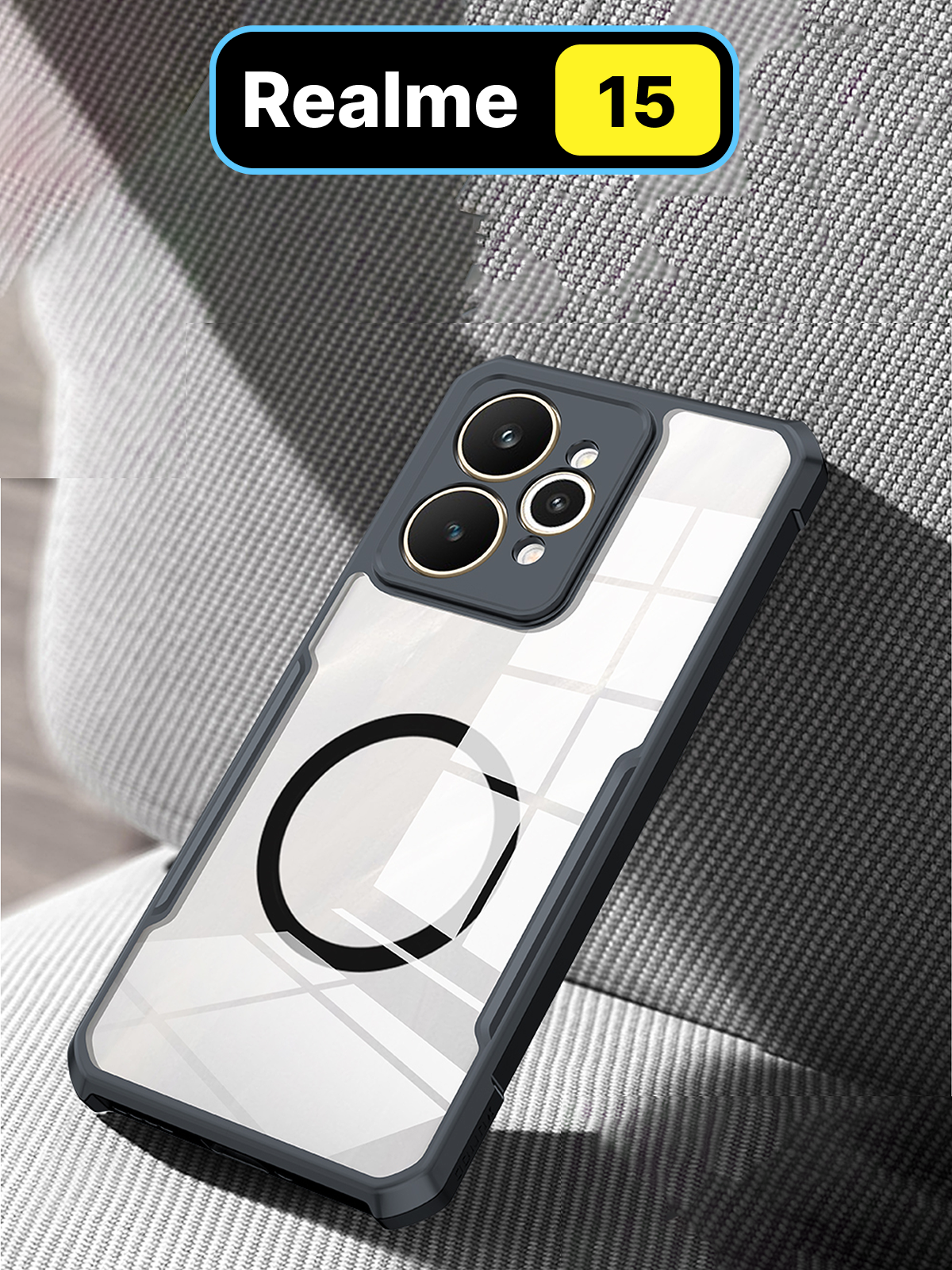 Чехол для Realme 15 c Магсейф изготовлен из поликарбоната и термопластичного полиуретана. Задняя панель абсолютно прозрачная и не скрывает цвет смартфона. Чехол-бампер имеет усиленные углы с "воздушной подушкой", способные принять на себя удар. Простая и надежная конструкция чехла обеспечивает безопасное и комфортное использование смартфона. Противоударный чехол изготовлен специально под модель телефона Realme 15, благодаря чему плотно надевается, соответствуя всем изгибам, разъёмам и кнопкам устройства. Главная его особенность заключается в усиленных углах: между углами чехла и телефона образуется воздушная подушка, амортизирующая при ударах и падениях. Бортики выступают над дисплеем и модулем камер, тем самым дополнительно их защищая, ещё больше снижая вероятность появления сколов и царапин. Сам чехол сделан из упругого, гибкого и износостойкого материала.