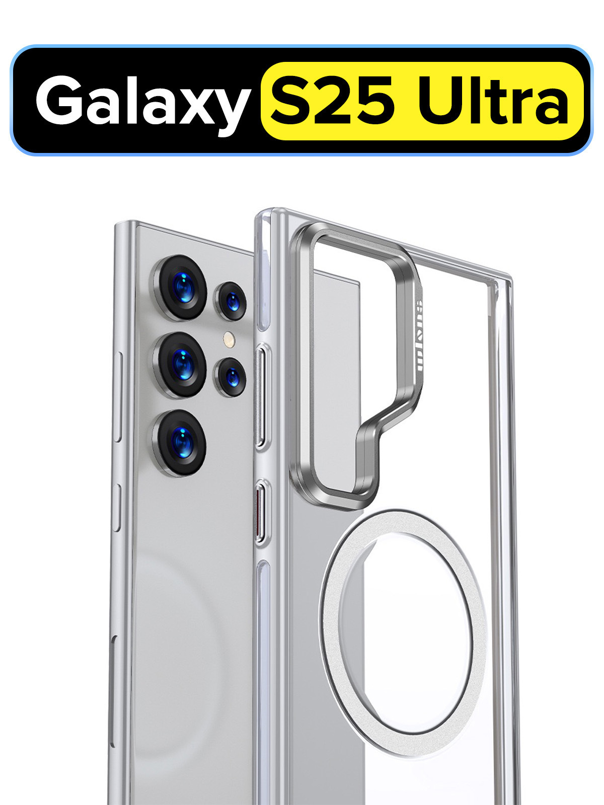 Чехол WLONS Spirit Shield разработан специально для Samsung Galaxy S25 Ultra. Он сочетает прозрачную акриловую заднюю панель с серебристым обрамлением, подчёркивая фирменный стиль смартфона. Главное преимущество - металлический защитный борт камеры, который не только надёжно защищает модуль от повреждений, но и легко трансформируется в удобную подставку для просмотра видео или видеозвонков. Чехол поддерживает технологию Магсейф: встроенные магниты выдерживают нагрузку до 1200 г, обеспечивая совместимость с зарядными устройствами и аксессуарами. Идеальная посадка, качественные материалы и стильный дизайн делают WLONS Spirit Shield отличным выбором для тех, кто ценит функциональность и эстетику. Поставляется в фирменной упаковке.