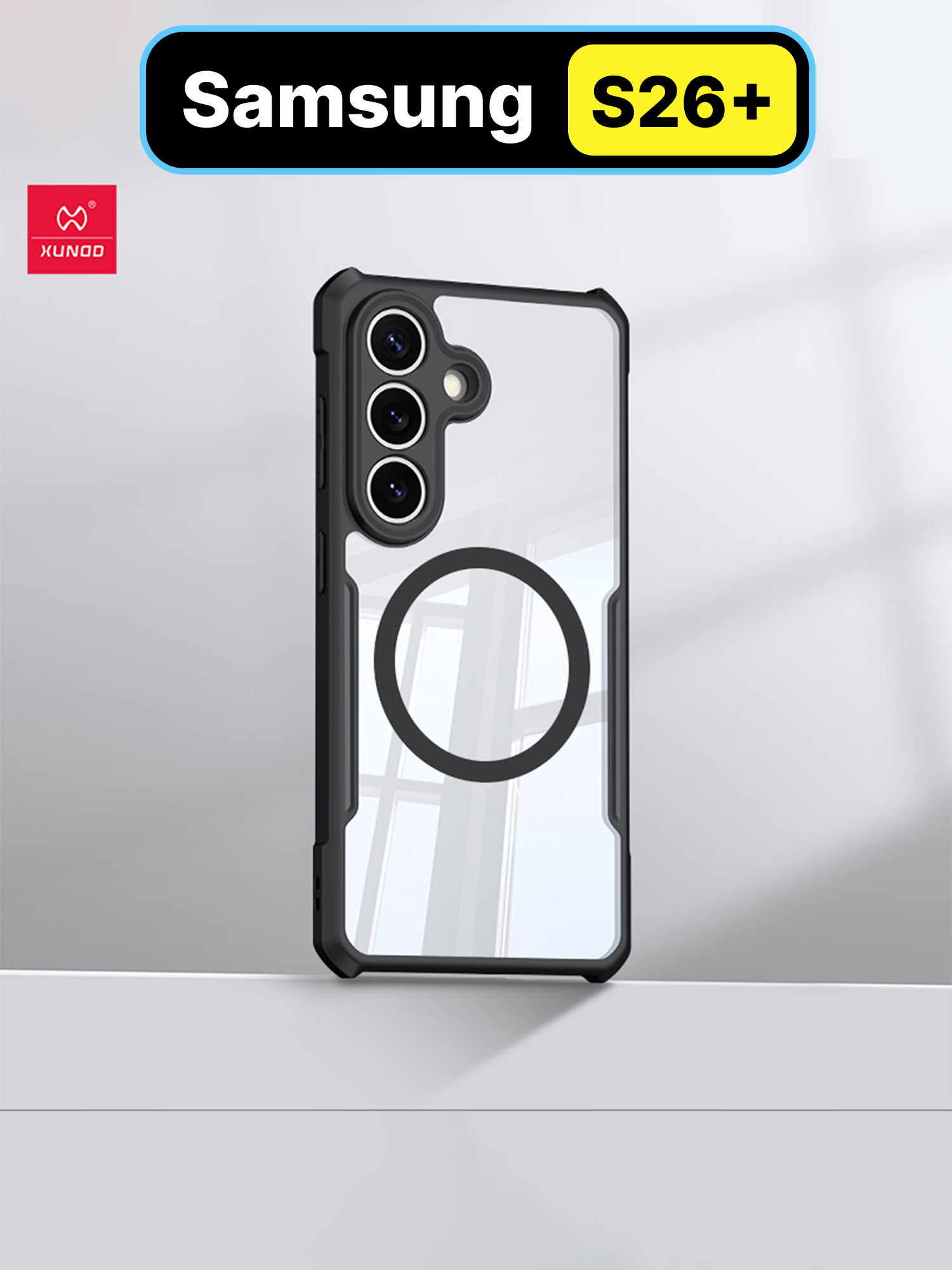 Чехол для Samsung Galaxy S26+ c Магсейф изготовлен из поликарбоната и термопластичного полиуретана. Задняя панель абсолютно прозрачная и не скрывает цвет смартфона. Чехол-бампер имеет усиленные углы с "воздушной подушкой", способные принять на себя удар. Простая и надежная конструкция чехла обеспечивает безопасное и комфортное использование смартфона. Противоударный чехол изготовлен специально под модель телефона Samsung Galaxy S26+, благодаря чему плотно надевается, соответствуя всем изгибам, разъёмам и кнопкам устройства. Главная его особенность заключается в усиленных углах: между углами чехла и телефона образуется воздушная подушка, амортизирующая при ударах и падениях. Бортики выступают над дисплеем и модулем камер, тем самым дополнительно их защищая, ещё больше снижая вероятность появления сколов и царапин. Сам чехол сделан из упругого, гибкого и износостойкого материала.