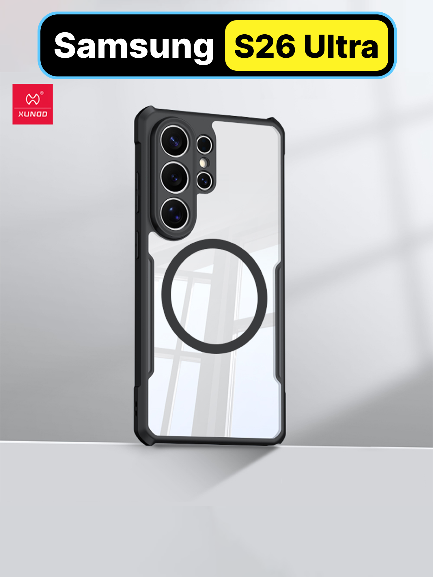 Чехол для Samsung Galaxy S26 Ultra c Магсейф изготовлен из поликарбоната и термопластичного полиуретана. Задняя панель абсолютно прозрачная и не скрывает цвет смартфона. Чехол-бампер имеет усиленные углы с "воздушной подушкой", способные принять на себя удар. Простая и надежная конструкция чехла обеспечивает безопасное и комфортное использование смартфона. Противоударный чехол изготовлен специально под модель телефона Samsung Galaxy S26 Ultra, благодаря чему плотно надевается, соответствуя всем изгибам, разъёмам и кнопкам устройства. Главная его особенность заключается в усиленных углах: между углами чехла и телефона образуется воздушная подушка, амортизирующая при ударах и падениях. Бортики выступают над дисплеем и модулем камер, тем самым дополнительно их защищая, ещё больше снижая вероятность появления сколов и царапин. Сам чехол сделан из упругого, гибкого и износостойкого материала.