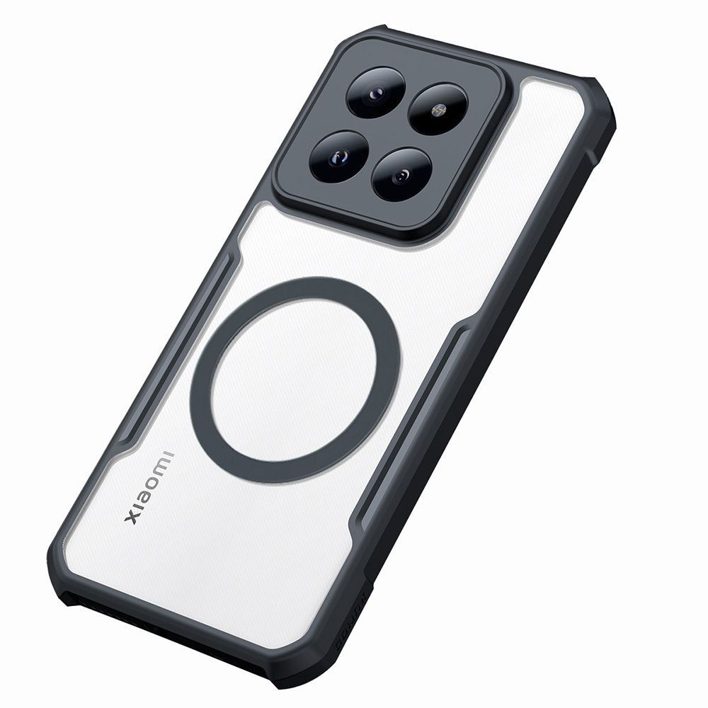 Чехол для Xiaomi 15 Pro c Магсейф изготовлен из поликарбоната и термопластичного полиуретана. Задняя панель абсолютно прозрачная и не скрывает цвет смартфона. Чехол-бампер имеет усиленные углы с "воздушной подушкой", способные принять на себя удар. Простая и надежная конструкция чехла обеспечивает безопасное и комфортное использование смартфона. Противоударный чехол изготовлен специально под модель телефона Xiaomi 15 Pro, благодаря чему плотно надевается, соответствуя всем изгибам, разъёмам и кнопкам устройства. Главная его особенность заключается в усиленных углах: между углами чехла и телефона образуется воздушная подушка, амортизирующая при ударах и падениях. Бортики выступают над дисплеем и модулем камер, тем самым дополнительно их защищая, ещё больше снижая вероятность появления сколов и царапин. Сам чехол сделан из упругого, гибкого и износостойкого материала.