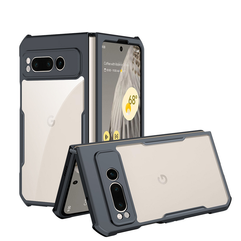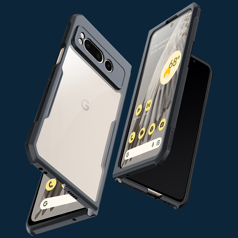 Чехол для Google Pixel Fold изготовлен из поликарбоната и термопластичного полиуретана. Задняя панель абсолютно прозрачная и не скрывает цвет смартфона. Чехол-бампер имеет усиленные углы с "воздушной подушкой", способные принять на себя удар. Простая и надежная конструкция чехла обеспечивает безопасное и комфортное использование смартфона. Противоударный чехол изготовлен специально под модель телефона Google Pixel Fold, благодаря чему плотно надевается, соответствуя всем изгибам, разъёмам и кнопкам устройства. Главная его особенность заключается в усиленных углах: между углами чехла и телефона образуется воздушная подушка, амортизирующая при ударах и падениях. Бортики выступают над дисплеем и модулем камер, тем самым дополнительно их защищая, ещё больше снижая вероятность появления сколов и царапин. Сам чехол сделан из упругого, гибкого и износостойкого материала.