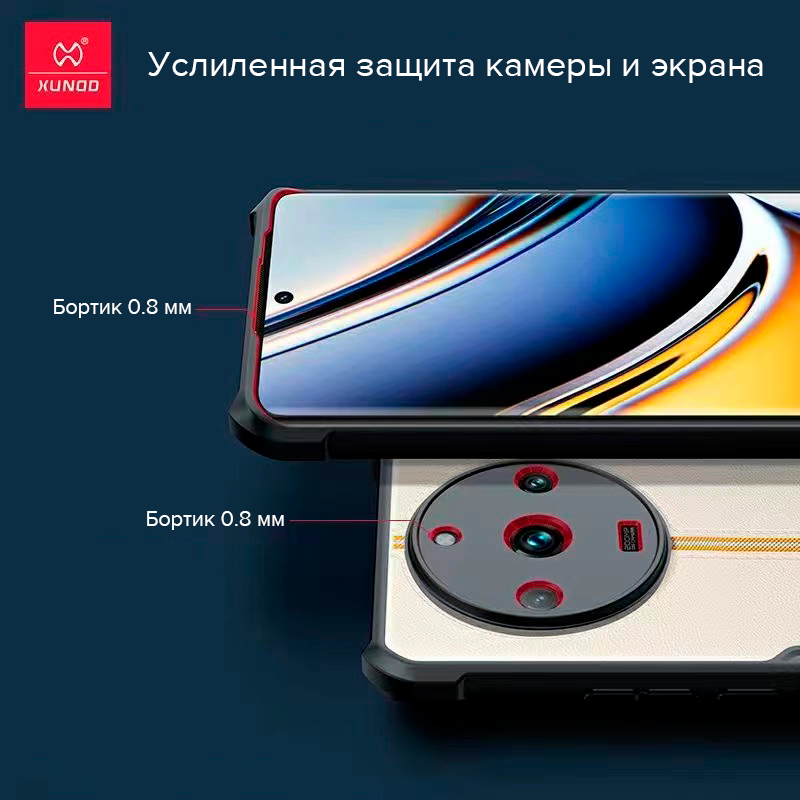 Чехол для Realme 11 Pro Plus изготовлен из поликарбоната и термопластичного полиуретана. Задняя панель абсолютно прозрачная и не скрывает цвет смартфона. Чехол-бампер имеет усиленные углы с "воздушной подушкой", способные принять на себя удар. Простая и надежная конструкция чехла обеспечивает безопасное и комфортное использование смартфона. Противоударный чехол изготовлен специально под модель телефона Realme 11 Pro Plus, благодаря чему плотно надевается, соответствуя всем изгибам, разъёмам и кнопкам устройства. Главная его особенность заключается в усиленных углах: между углами чехла и телефона образуется воздушная подушка, амортизирующая при ударах и падениях. Бортики выступают над дисплеем и модулем камер, тем самым дополнительно их защищая, ещё больше снижая вероятность появления сколов и царапин. Сам чехол сделан из упругого, гибкого и износостойкого материала.