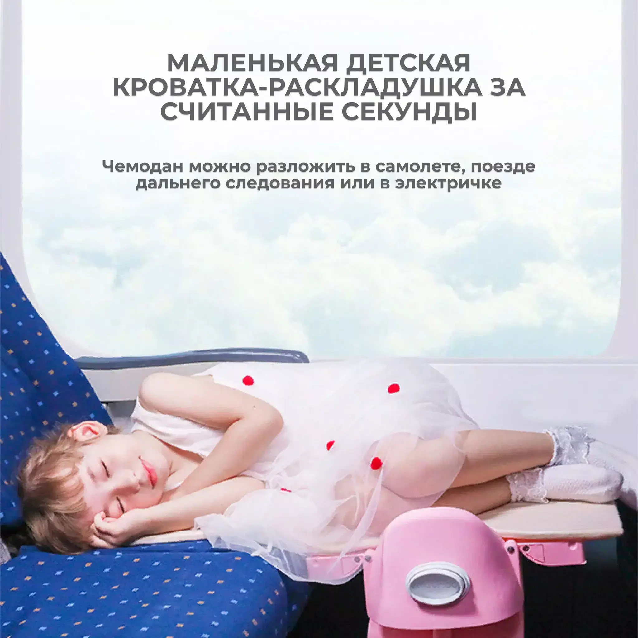 Предоставьте юному путешественнику самому везти этот лёгкий чемоданчик или с вашей помощью передвигаться на нем верхом по терминалам аэропорта без стресса и хлопот. На борту самолёта, как только погаснет знак «Пристегните ремни», превратите MuuHoo из чемодана в комфортную кроватку, выполнив всего лишь несколько простых действий. Чемоданчик рассчитан на детей 3-7 лет, а функция кроватки — для малышей от 0 лет. Официально одобрен множеством авиаперевозчиков.