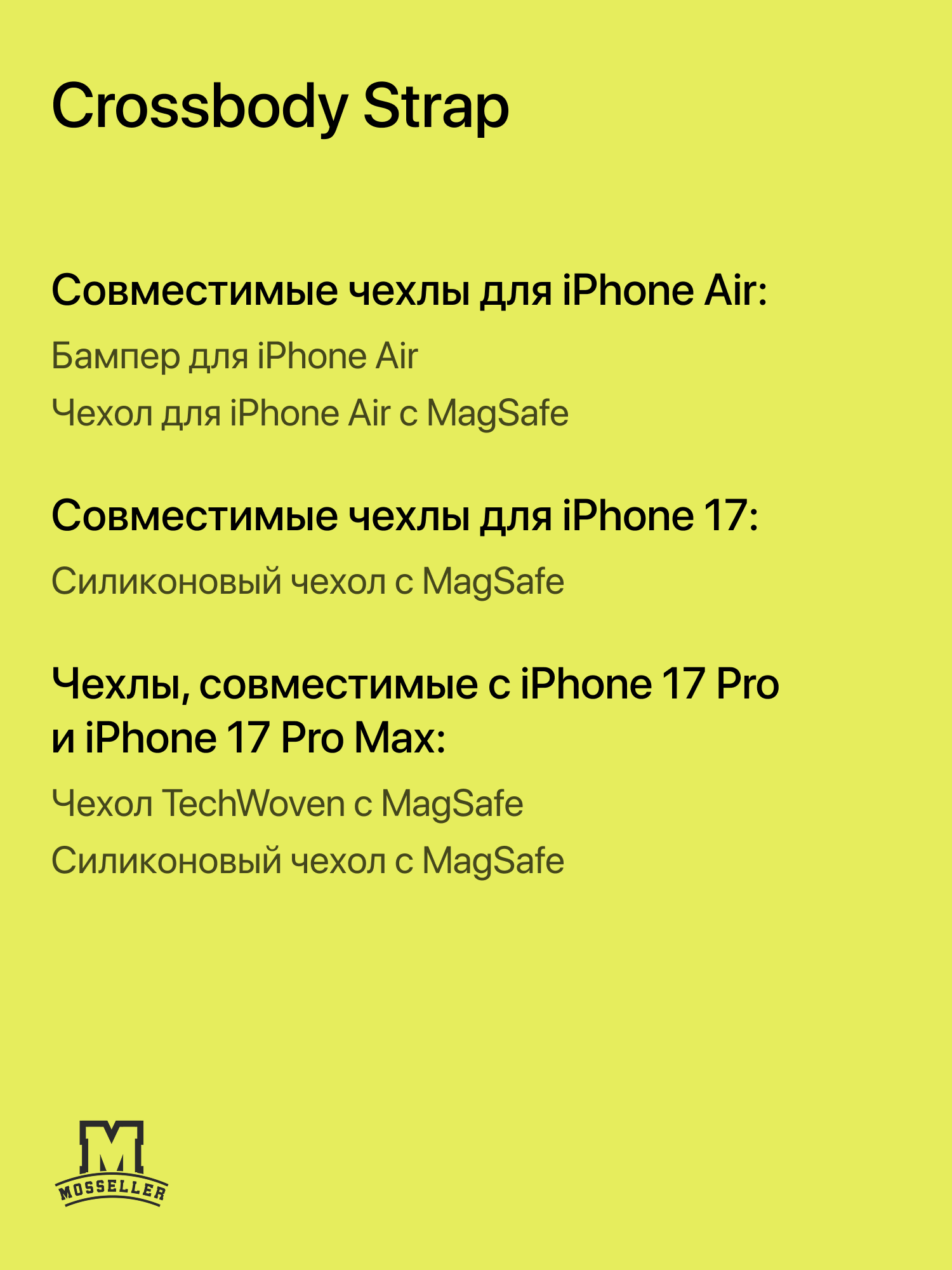 Ремешок Crossbody предназначен для крепления к совместимым чехлам Apple, обеспечивая удобный и освобождающий руки способ носить iPhone.
