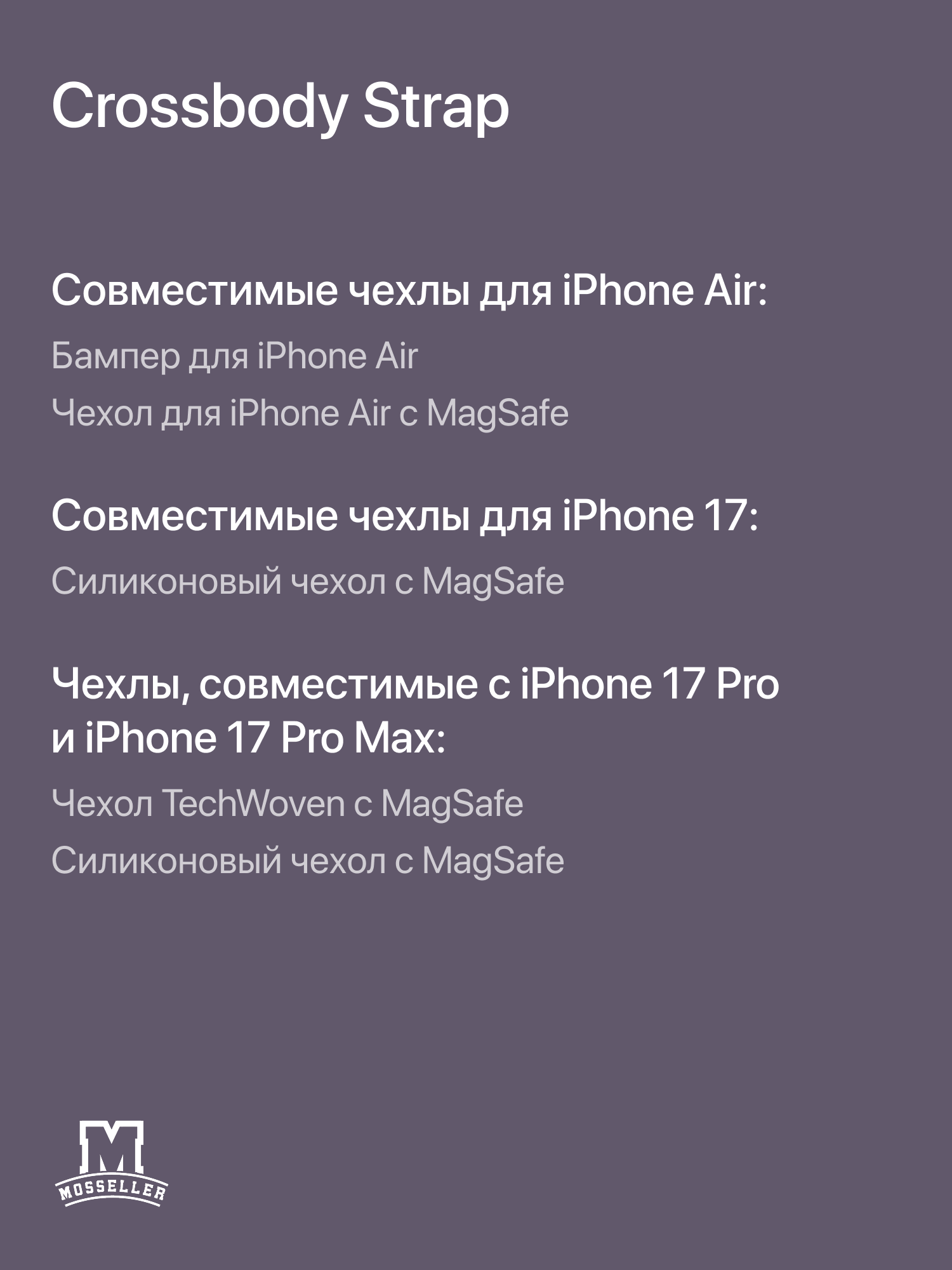 Ремешок Crossbody предназначен для крепления к совместимым чехлам Apple, обеспечивая удобный и освобождающий руки способ носить iPhone.
