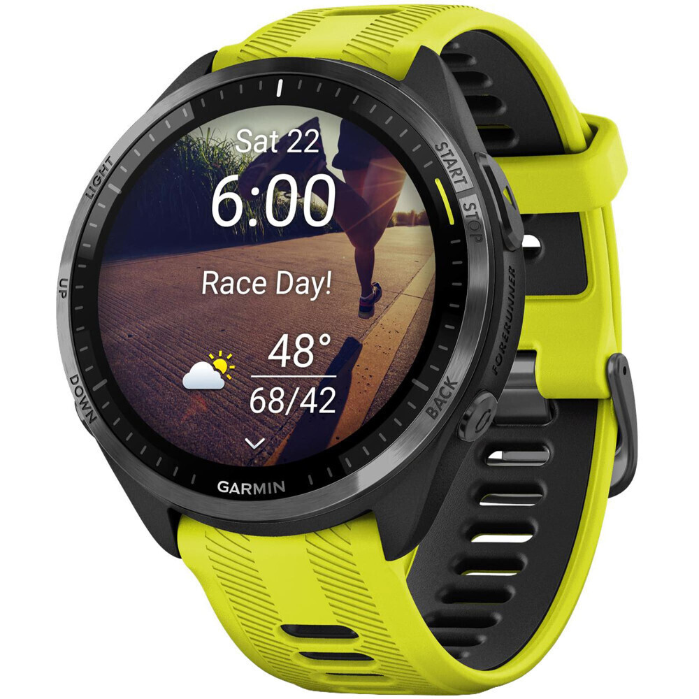 Garmin Forerunner 965 AMOLED Amp Yellow/Black DLC Titanium (модель 010-02809-82) — премиальные спортивные смарт-часы с AMOLED-дисплеем и титановым корпусом
