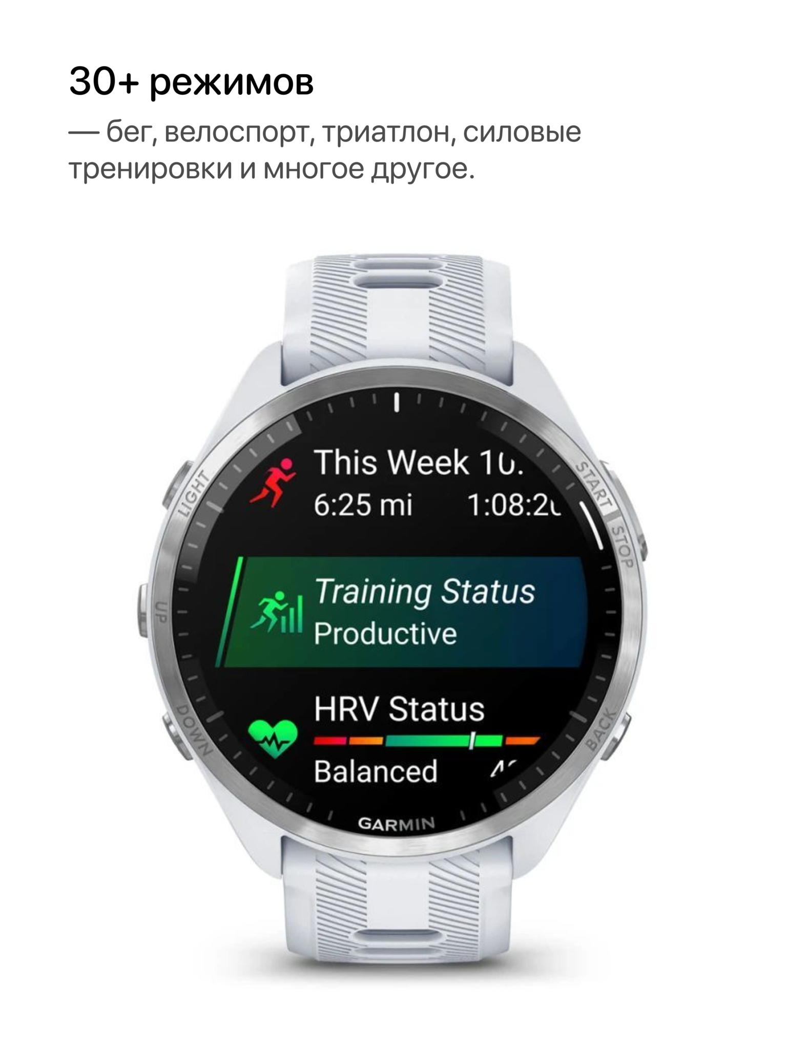 Garmin Forerunner 965 AMOLED White (модель 010-02809-81) — премиальные спортивные смарт-часы с AMOLED-дисплеем и титановым корпусом
