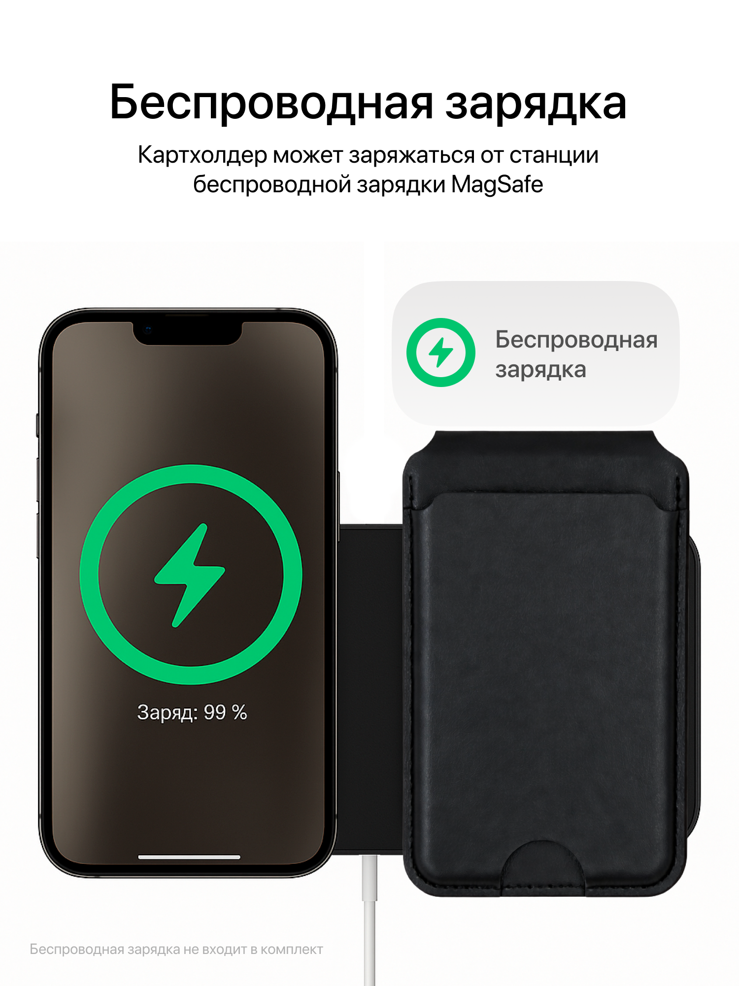 Он поддерживает зарядку от любой беспроводной зарядки.