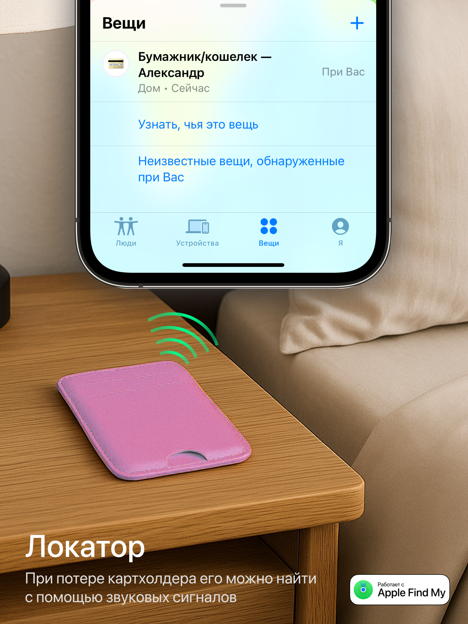 Этот картхолдер поддерживает технологию Apple Find My (Локатор) — вы всегда сможете отследить его местоположение через приложение, если потеряете.
