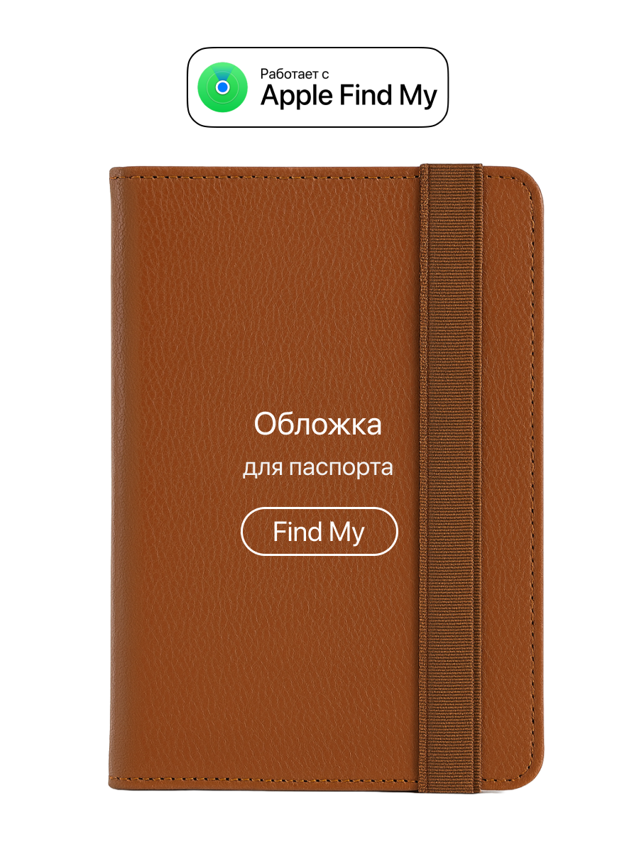 Обложка для паспорта с Локатором Apple Find My. Коричневый