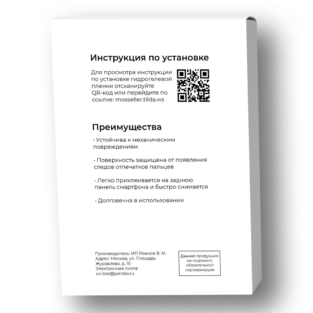 Гидрогелевая пленка 1шт; комплект для установки 1шт; фирменная паковка 1шт; ракель 1шт.