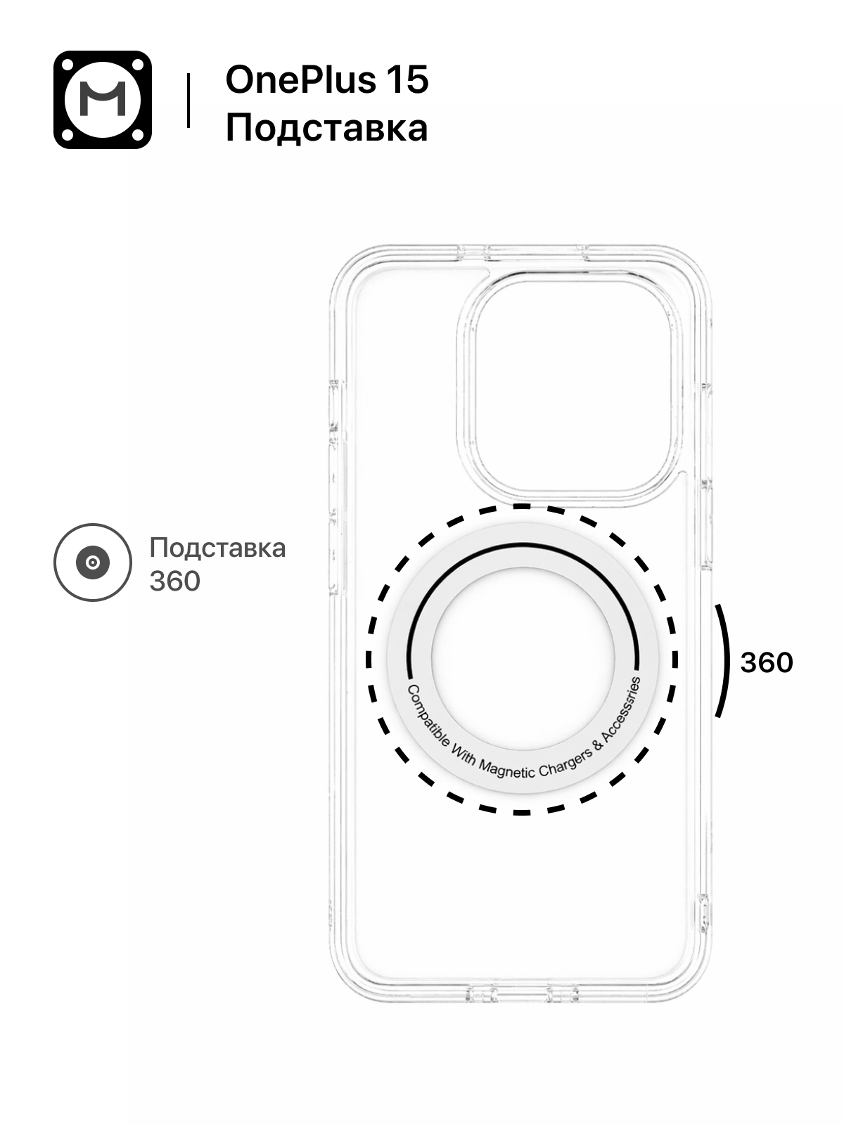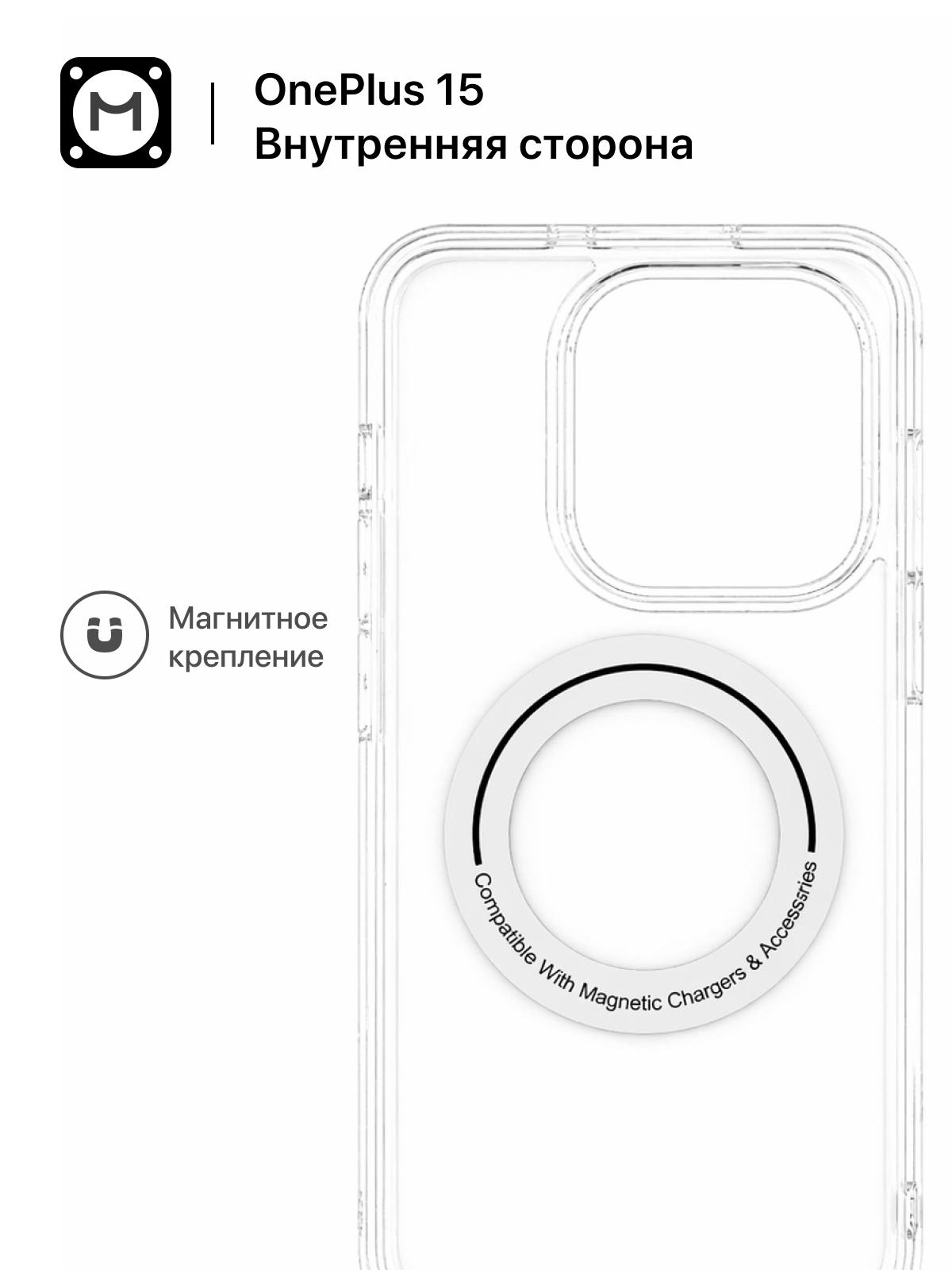 Ключевая особенность - встроенное магнитное кольцо, совместимое с магнитными зарядными устройствами и аксессуарами. Обеспечивает стабильную фиксацию и корректное позиционирование при зарядке.