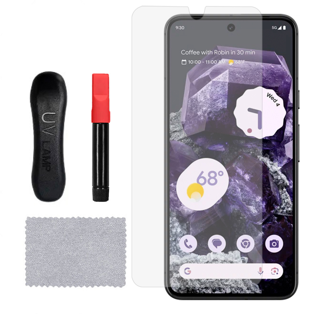 Защитное стекло с ультрафиолетовым отвердителем 1шт, ультрафиолетовый отвердитель 1шт, ультрафиолетовая лампа Type-C 1шт, комплект для очистки экрана 1шт.
