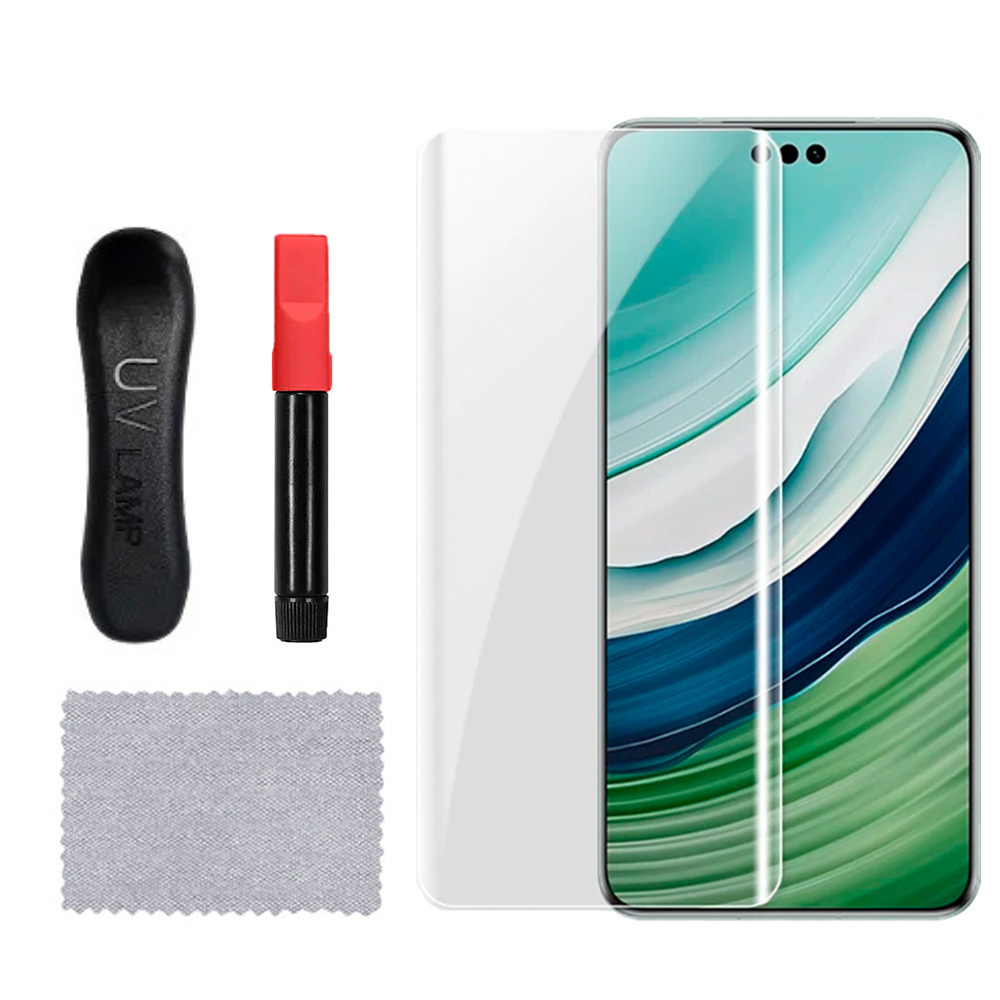 Совместимость: Huawei Mate 60 Pro / Huawei Mate 60 Pro Plus. Защитное стекло с приклейкой на ультрафиолетовый клей надежно защитит дисплей Вашего смартфона. Преимущества: Через стекло работает отпечаток пальца. Это действительно стекло, а не пластик в отличии от аналогов. Без черных рамок. Не отходит по краям. Ультрафиолетовая лампа в комплекте! Инструкция по установке: Используйте салфетки из комплекта для удаления отпечатков пальцев, разводов и пыли с поверхности смартфона. Удалите с помощью одного из стикеров оставшуюся пыль. Выберите нужный стикер из комплекта - в зависимости от формата и размера динамика, и обязательно заклейте им отверстие динамика. Перед установкой стекла убедитесь, что экран смартфона идеально очищен от частиц пыли - в противном случае возможно образование воздушных пузырей между дисплеем и защитным стеклом, которые будет невозможно удалить. Используйте подкладку для выравнивания смартфона (упаковку от комплекта стикеров), чтобы избежать наклона экрана, который может привести к неравномерному распределению силикона по поверхности. Распределите весь силикон по поверхности дисплея в единую продолговатую лужицу в центральной области экрана. Отделите техническую пленку (если она есть) от защитного стекла. Начинайте клеить стекло на поверхность экрана, фиксируя двумя руками защитное стекло, плавно опустите его на дисплей смартфона. Дождитесь полного распределения силиконовой основы по поверхности. Силикон покрывает всю площадь под защитным стеклом без каких-либо сторонних воздействий. Не пытайтесь надавить или каким-либо иным способом ускорить процесс - внешнее воздействие нарушит процесс установки стекла. Единственное, что допустимо - это минимальные боковые касания для совмещения контуров защитного стекла и смартфона. После распределения силикона под защитным стеклом, подождите минимум 80 секунд, чтобы излишки вышли по краям стекла. Убедившись, что силикон полностью распределился, а контуры смартфона и стекла совпадают, поднесите УФ-лампу к экрану и медленно проводите над стеклом, не касаясь его, не более 6 секунд - это зафиксирует стекло и позволит вам удалить излишки силикона. Используя сухую салфетку из комплекта (или обычную бумажную салфетку), аккуратно удалите излишки силикона по краям стекла. Повторно воспользуйтесь УФ-лампой и завершите процесс установки стекла, проводя от одного края смартфона до другого, до полного затвердевания силикона не менее 3-х минут. Для полноценного затвердевания силикона проводите лампой не только над экраном, но и по бокам устройства. Используя тканевую салфетку, очистите телефон от остатков силикона.