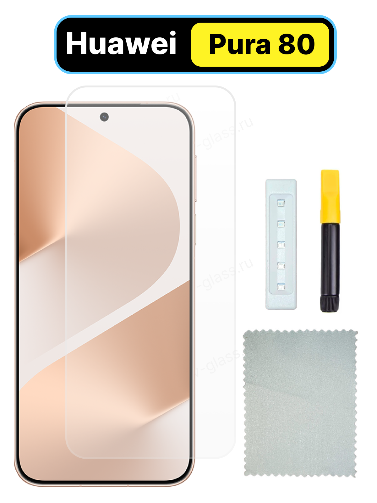 Совместимость: Huawei Pura 80. Защитное стекло с приклейкой на ультрафиолетовый клей надежно защитит дисплей Вашего смартфона. Преимущества: Через стекло работает отпечаток пальца. Это действительно стекло, а не пластик в отличии от аналогов. Без черных рамок. Не отходит по краям. Ультрафиолетовая лампа в комплекте! Инструкция по установке: Используйте салфетки из комплекта для удаления отпечатков пальцев, разводов и пыли с поверхности смартфона. Удалите с помощью одного из стикеров оставшуюся пыль. Выберите нужный стикер из комплекта - в зависимости от формата и размера динамика, и обязательно заклейте им отверстие динамика. Перед установкой стекла убедитесь, что экран смартфона идеально очищен от частиц пыли - в противном случае возможно образование воздушных пузырей между дисплеем и защитным стеклом, которые будет невозможно удалить. Используйте подкладку для выравнивания смартфона (упаковку от комплекта стикеров), чтобы избежать наклона экрана, который может привести к неравномерному распределению силикона по поверхности. Распределите весь силикон по поверхности дисплея в единую продолговатую лужицу в центральной области экрана. Отделите техническую пленку (если она есть) от защитного стекла. Начинайте клеить стекло на поверхность экрана, фиксируя двумя руками защитное стекло, плавно опустите его на дисплей смартфона. Дождитесь полного распределения силиконовой основы по поверхности. Силикон покрывает всю площадь под защитным стеклом без каких-либо сторонних воздействий. Не пытайтесь надавить или каким-либо иным способом ускорить процесс - внешнее воздействие нарушит процесс установки стекла. Единственное, что допустимо - это минимальные боковые касания для совмещения контуров защитного стекла и смартфона. После распределения силикона под защитным стеклом, подождите минимум 80 секунд, чтобы излишки вышли по краям стекла. Убедившись, что силикон полностью распределился, а контуры смартфона и стекла совпадают, поднесите УФ-лампу к экрану и медленно проводите над стеклом, не касаясь его, не более 6 секунд - это зафиксирует стекло и позволит вам удалить излишки силикона. Используя сухую салфетку из комплекта (или обычную бумажную салфетку), аккуратно удалите излишки силикона по краям стекла. Повторно воспользуйтесь УФ-лампой и завершите процесс установки стекла, проводя от одного края смартфона до другого, до полного затвердевания силикона не менее 3-х минут. Для полноценного затвердевания силикона проводите лампой не только над экраном, но и по бокам устройства. Используя тканевую салфетку, очистите телефон от остатков силикона.